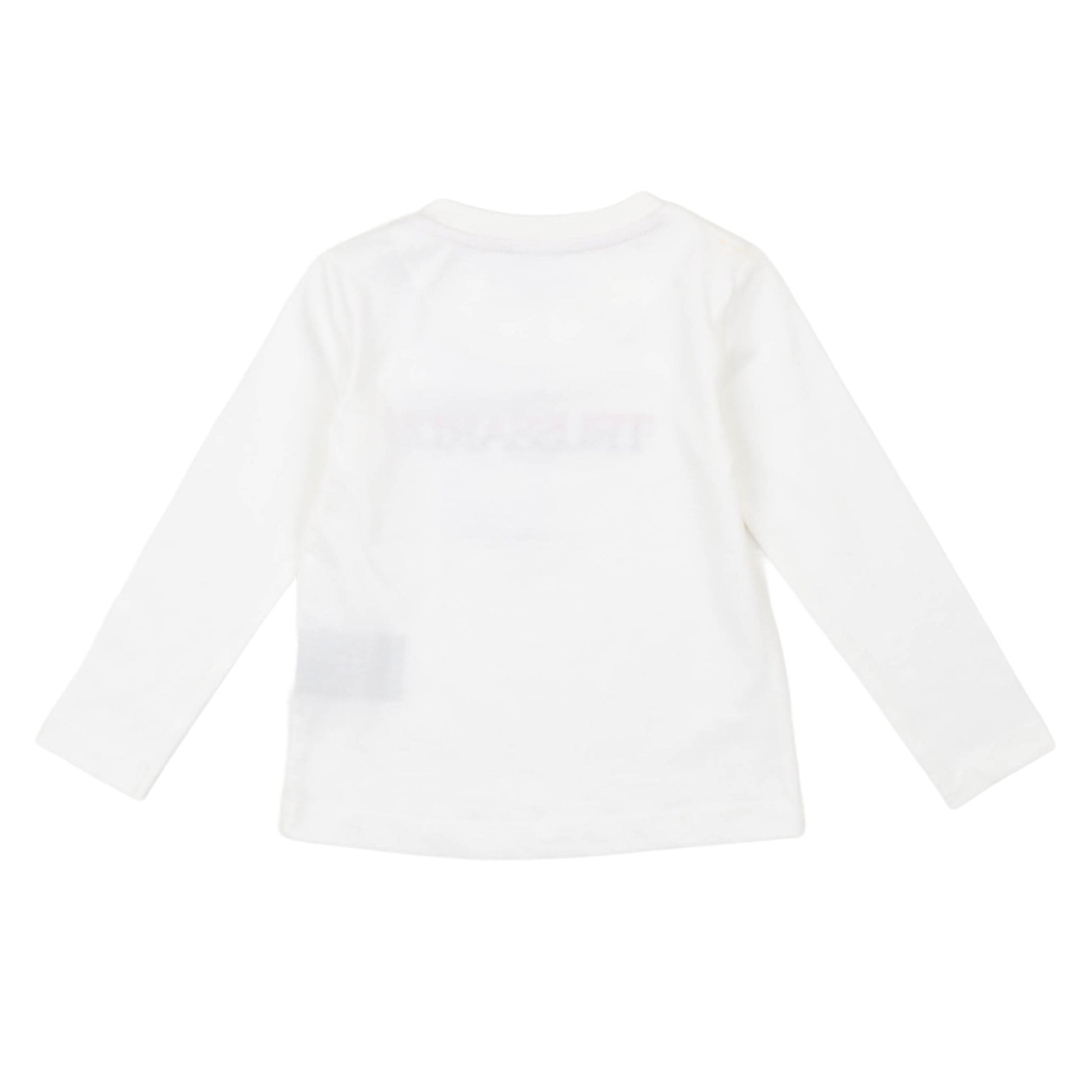 T-shirt bianca manica lunga Trussardi, a girocollo con due bottoni a pressione sulla parte alta sinistra, logo cucito nella parte centrale, 100% cotone, taglia 24 mesi.